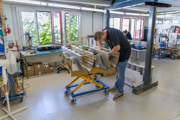 Unsere Lautsprecher werden durch ein eingespieltes und hochspezialisiertes Team zusammengebaut, bei welchem jeder Handgriff sitzt. Die Qualitätskontrolle erfolgt bereits akribisch genau bei jedem einzelnen Produktionsschritt, sodass die Endkontrolle meist nicht mehr viel zu tun hat.